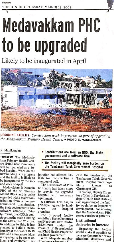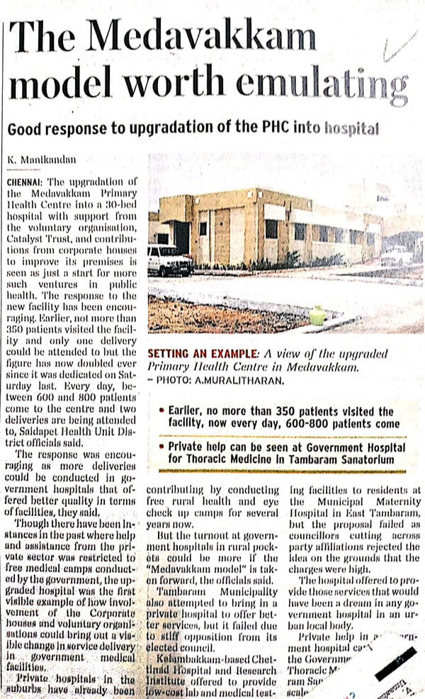 Govt. Hospital at Medavakkam, Chennai for Catalyst Trust