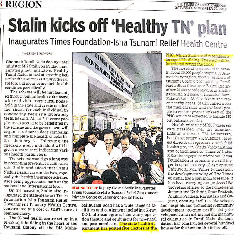 Government Hospital at Semmenchery, Chennai for Times Of India Group